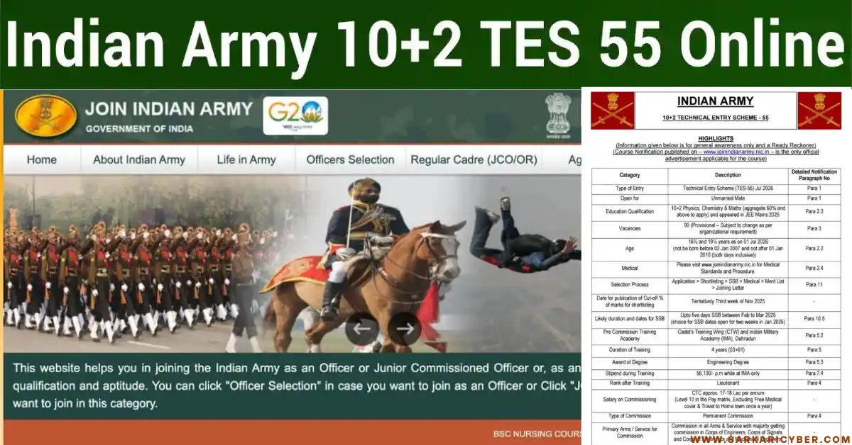 About Post: Join Indian Army (Permanent Commission) has released a vacancy for this 10+2 Technical Entry Scheme Course TES-55 (July 2026). Any candidate who wants to apply can please apply from date 14/10/2025 to date 13/11/2025. For detailed information on how to apply, please read Advertisement No. TES-55/2025 carefully and see the highlights below.
